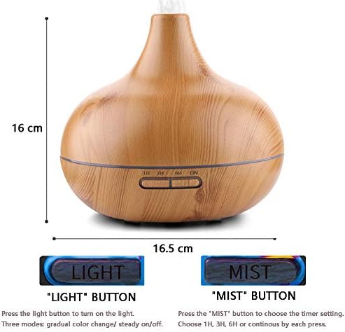 Botón de luz: presione una vez: active la luz que cambia de 7 colores. Presionar dos veces: el color claro permanece permanente. Presione tres veces: el color de la luz cambiará y recorrerá los 7 colores con cada presión del botón. Mantenga presionado el botón durante un segundo: apague la luz. Botón izquierdo: Niebla ON / OFF Timer: 1h / 3h / 6h / On Esta máquina tiene una función de apagado automático que se activa cuando hay un simiento de agua insuficiente.