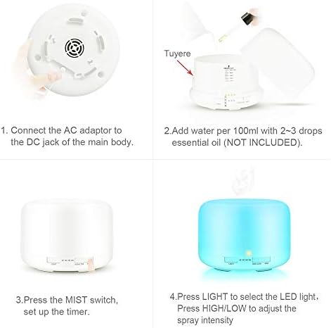 Este difusor de aromaterapia funciona como un difusor de aceite esencial y un humidificador de vapor frío que es excelente para proporcionar aromaterapia para aliviar el estrés, cubrir olores y purificar/hidratar el aire de la habitación.